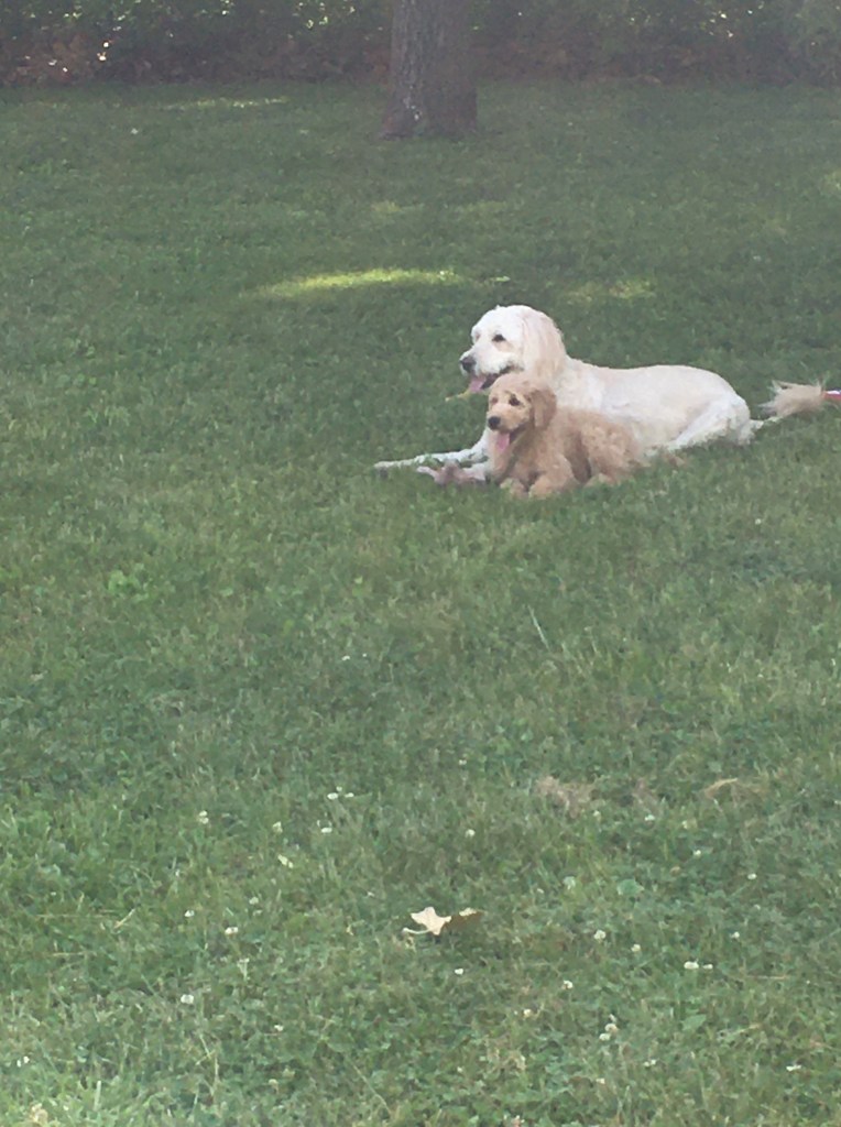 The two of them are getting along well. Here they sit while Kathy and I worked on the garden this week.