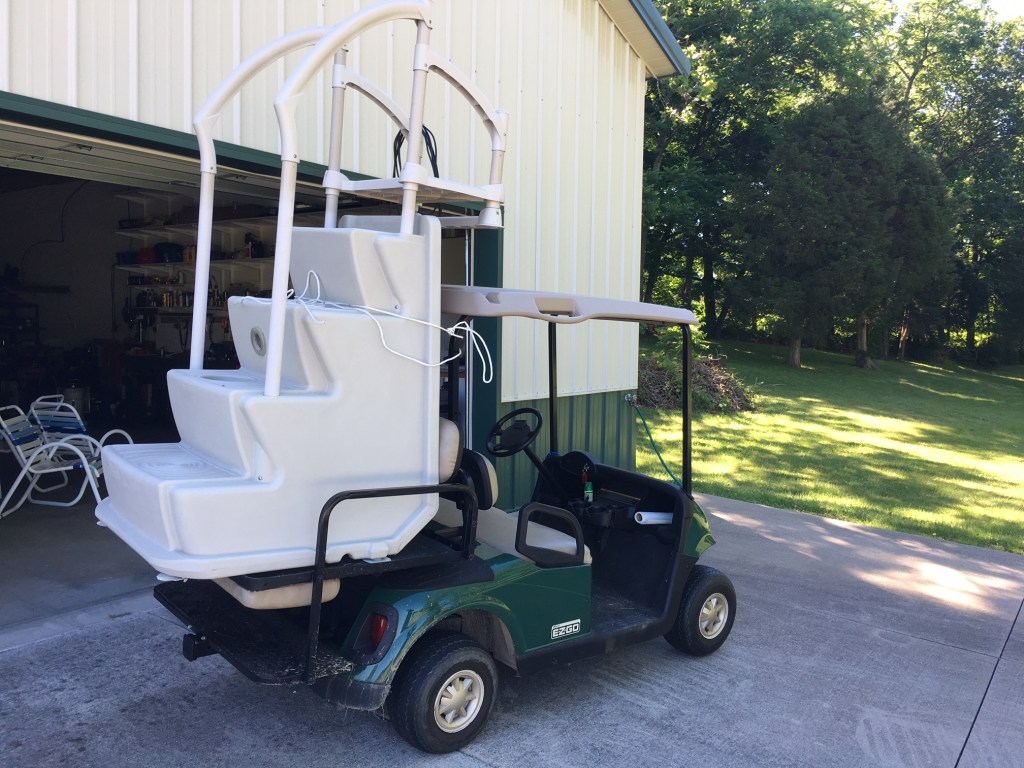 Since Kathy wasn’t available to help I had to employ some unusual methods to get things done. Here is how I got the pool ladder from the shop over to the pool. I was expecting someone to stop along the road to take pictures. But it worked and I got the ladder in the pool and attached as it should be.
