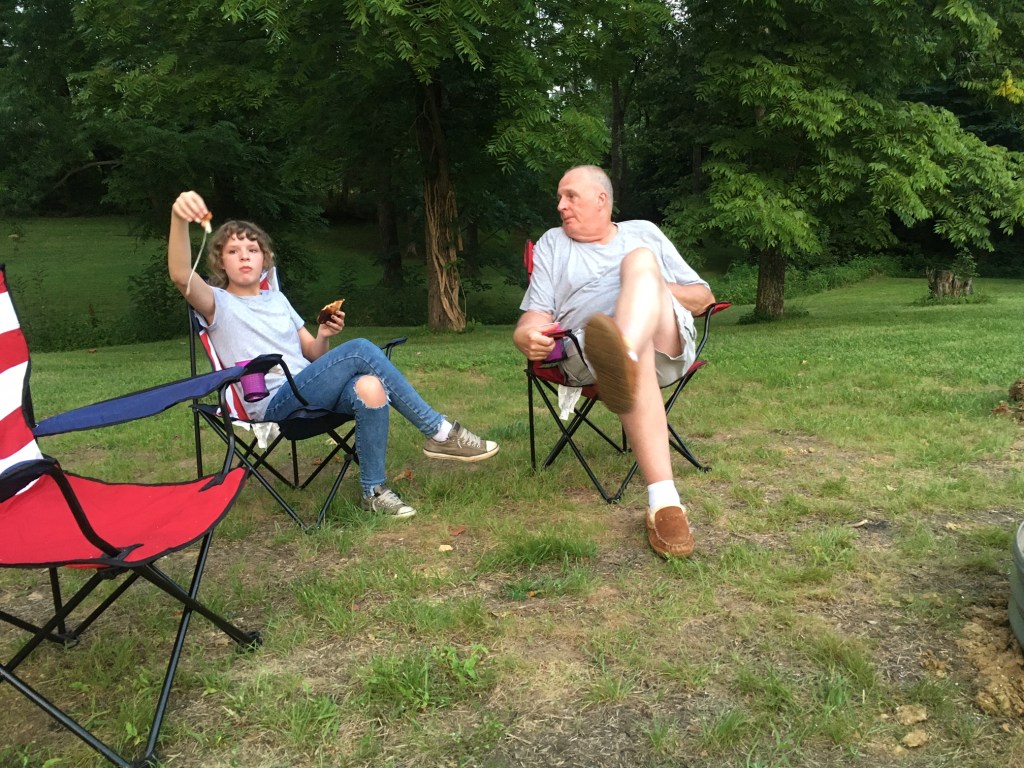 Shortly after we got here I bought a couple fire rings to make a bigger fire ring for my son-in-law. That didn’t work and I destroyed one in the process so I wanted to put the other one out in the yard so we could have camp fires occasionally. I was never allowed to till it was decided that the grand kids might like it. So Wednesday morning I dug a hole for the fire ring. Got that all ready then started splitting some wood to burn. Kathy came home and decided it wasn’t enough wood so I split more in the afternoon. I thought it would be fun and good exercise but I was wrong. I don’t recall it being that much work to split fire wood. Anyway, we had enough for Thursday night and Carter and I decided to go get some more rather than split it for Friday night. Went to Tractor Supply and it wasn’t aged very long. Did not burn well and made a lot of smoke. So I guess I’ll be splitting the rest of what I have.