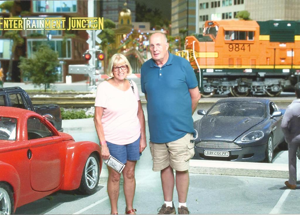 Here’s Kathy and I getting our picture taken as though we are in the display. You can see by that little guy to my left the approximate scale. Or perhaps you can’t. Anyway, as you go through the display, you pass through period accurate modeling. The detail is unreal. And from what I know about steam and diesel locomotives, they are technically accurate as well. Definitely a place I would like to go back to.