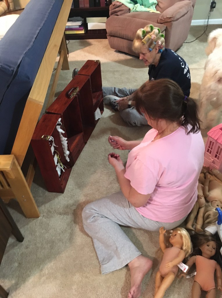On a lighter note, it is now time to take down the Christmas tree. For whatever reason, Kathy now has an issue with it going in the closet where we usually keep it. So Julie suggested the closet with all the kids toys get cleaned out and the tree and trimmings get put there. So, yesterday Julie and the kids came over to go through toys. Here is the result.