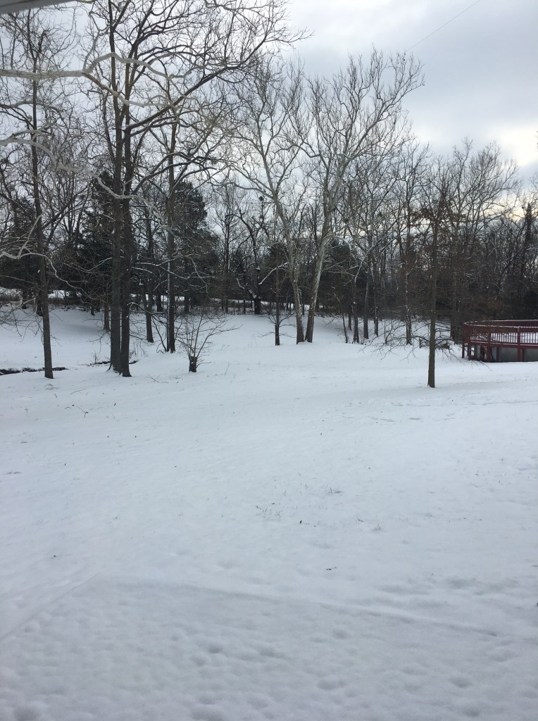 It snowed in Kentucky. Thursday morning it started around 9AM. I went out in the truck for a ride to the County Clerks office to get the lien off the truck since I have it paid for now. Also took Gary’s computer over to him. Roads were getting very slick and it was obvious that people around here have no idea how to drive on them. I could give you at least a half dozen stories about observations I made but suffice to say these people suck at driving in bad weather. The snow continued all day and I would guess we got perhaps 3 to 3 and 1/2 inches. Some places got as much as 6 to 8 inches. The picture was taken Friday morning. Then it warmed up here and started raining late Saturday night and it’s all gone now. That’s the way I like it. Didn’t even think about putting chains on the tractor to plow.