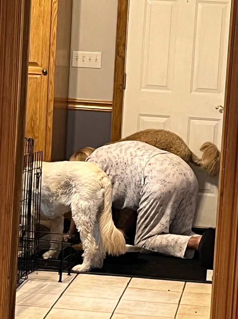 Okay, are the dogs and Kathy looking for a “lost” dog toy or dog item? On the Covid booster front…was this your first or second booster? I had my first and I had a mild reaction that just made me tired. Don’t plan on having another, at least not just yet. Hope all is well with your A-Fib. Looking at the tennis picture, at a distance it looks like Todd!