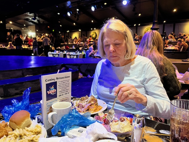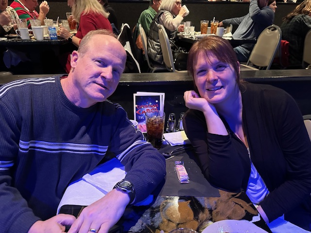 12/22/23 – Friday- Up a little early again and chatted with the guys on the Altoona Old Timer’s Net. Spent most of the day working on my QMX transceiver project. After lunch I took the truck down and filled it with gas. Around 3PM I stopped and got cleaned up. Then at 5PM we went to the Derby Dinner Theater over in Indiana to see “A Christmas Carol” musical. Home and usual routine. Started getting a cold tonight.