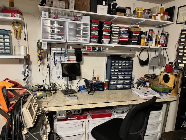 Saturday I spent the day working in the shack. My son-in-law got me an electronic microscope to work on small electronic projects. I didn’t have room for it on my bench so I cleared off the shelves beside the bench, took those down and put them up again. They were starting to come out of the wall so I figured I’d take care of that. Then I sorted out a bunch of stuff for Kathy to go to Good Will and filled a garbage bag of stuff to throw out. Put the rest back, re-organized the bench and put the microscope on it.